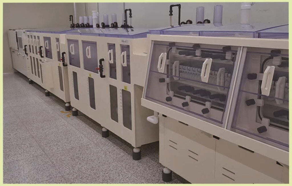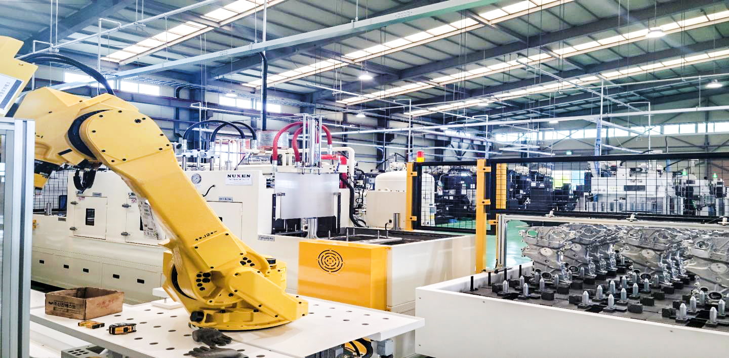 특징 : 자동 로봇 무인 운전 지원이 가능하며 반입 Conveyor에 적재하면 Step 이동식 세척 구간으로 단계별 공정이 자동으로 이뤄지는 세척 System